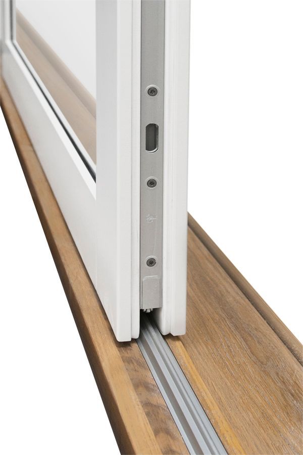 Lyftglid konstruktion (tyngden av dörrbladen går på hjul på skena på tröskeln)